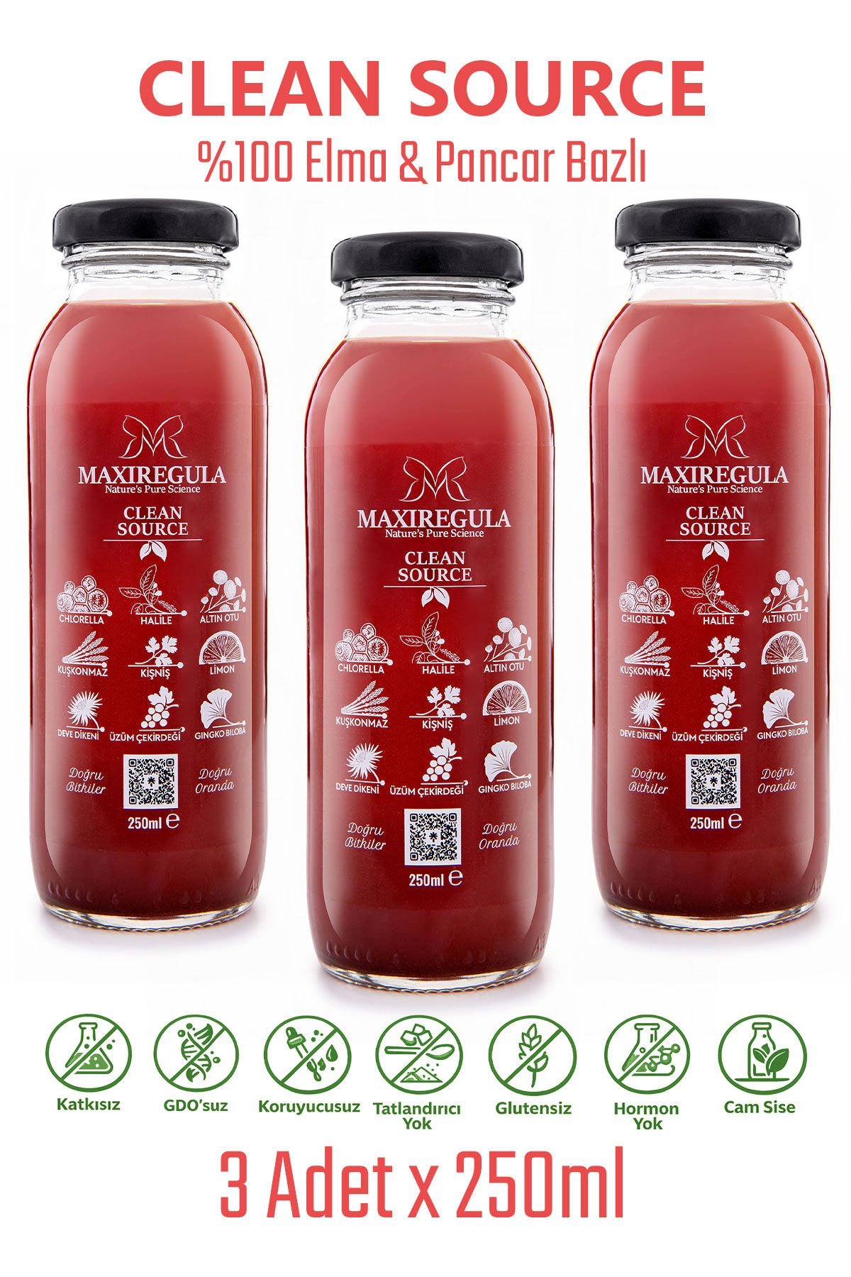 3'lü Paket Clean Source Bitkisel İçerikli Fonksiyonel %100 Elma & Pancar Meyve Suyu (250ml)
